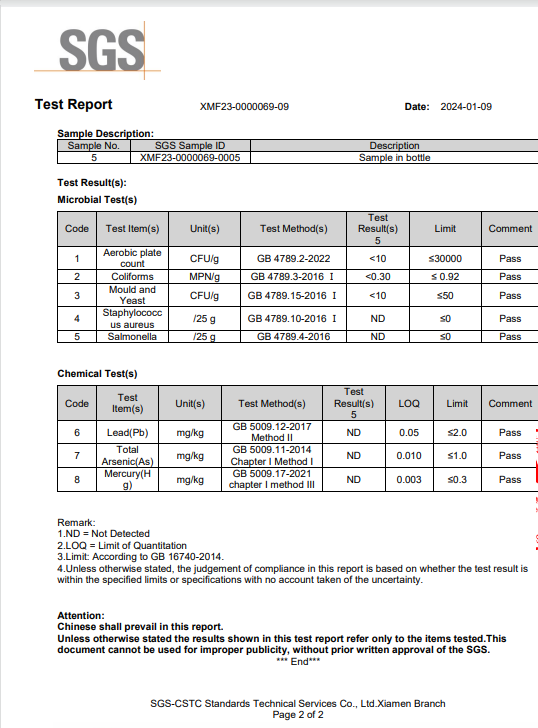 | PGXR® Oligopeptide | 40mg | Sourced from fish, it supports skin and joint health. |
